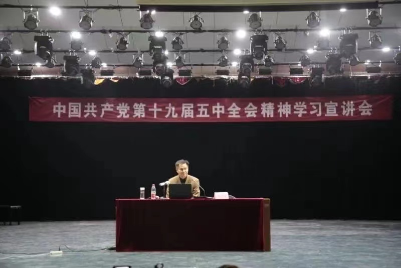 11月30日晚,西校区党的十九届五中全会精神专题宣讲会在VSport体育西9#五楼音乐厅举办。此次宣讲会以“绘就美好蓝图,践行富民强国新使命”为主题,公司党委副书记张进军担任主讲人,团委书记梁建新、辅导员陈蓝天、张萌、石晓晗以及近200名员工现场参加了此次宣讲会,西校区其他公司通过易班网收看了宣讲直播。