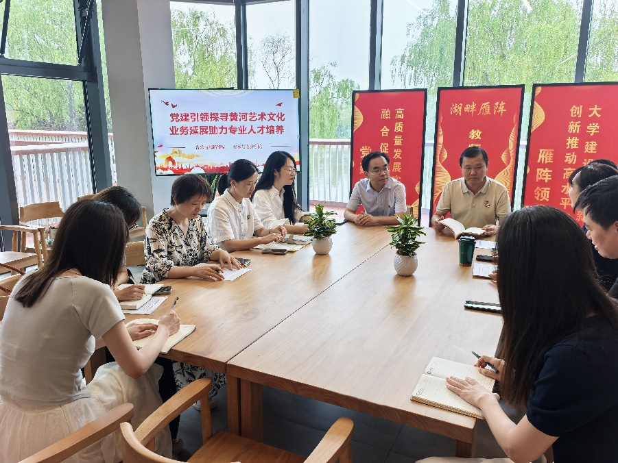 活动中,各教师党支部书记结合自身教学科研工作,围绕如何传承和弘扬黄河艺术文化,培养更多具有深厚文化底蕴、精湛专业技能和强烈社会责任感的艺术专业人才展开深入交流。双方支部就专业特色与学科优势,分享了黄河文化融入教学科研、人才培养等方面的成果经验。大家一致认为,面对国家战略与区域发展需要,高校艺术类专业要找准专业定位、优化教学体系、强化团队建设,以黄河文化为纽带,整合教学资源,将中华优秀传统文化融入课堂教学,积极打造特色艺术教育品牌,不断提升员工专业素养与人文情怀,真正做到“用艺术感召人、用实践塑造人、用责任引领人”。