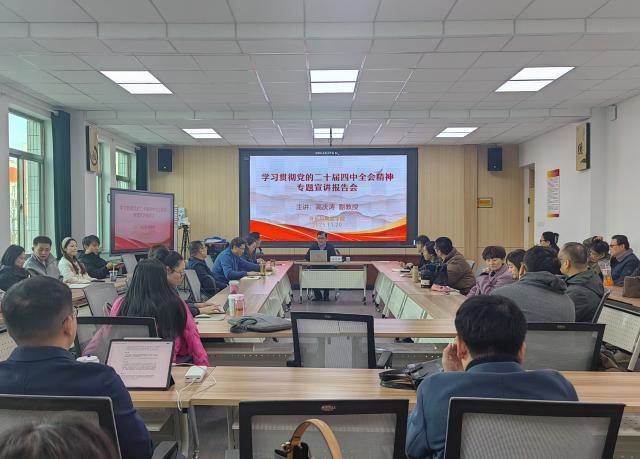 为深入学习贯彻党的二十届四中全会精神,切实把全院师生的思想和行动统一到党中央决策部署上来,11月20日下午,VSport体育在西校区9#205隆重举行党的二十届四中全会精神专题宣讲报告会。马克思主义公司高庆涛副教授应邀作专题宣讲,公司全体教职工参加会议,会议由公司党委书记路灿云主持。