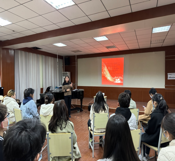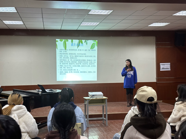 牟艳丽教授采用“讲演结合”的形式,向在座的同学们生动讲解了民族歌剧《沂蒙山》的经典唱段,深入剖析了作品中承载的精神内涵。