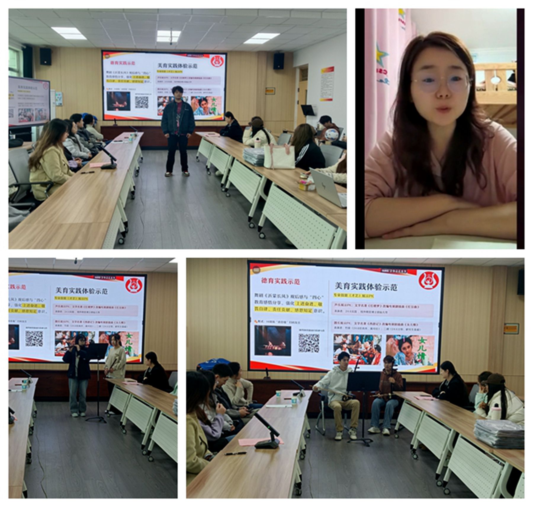 美育实践展示精彩纷呈,班内学子、优秀员工在现场、直播间联动展示话剧、电视剧插曲《红豆词》《红豆曲》的诗乐之美与自身的演唱之美;三位班内本科生与一位研究生先后以竹笛、二胡倾情演奏PK《西游记》插曲《女儿情》,古典味、民族味、当代审美趣味的有机融合让场内外听众沉浸于美的享受之中。活动嘉宾、公司副经理、二胡演奏家王海华教授肯定了唱奏者的专业水准,提出精进建议,并带领全场演唱1987版电视剧《红楼梦》主题曲《枉凝眉》,将体验活动推向高潮。