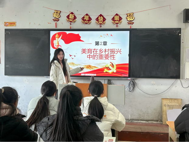 2月6日,团队成员李春婷回到自己的母校,开展了一场以“美育领航,乡村换新”为主题的宣讲活动。过程中,李春婷以孔繁森精神为切入点,借助生动的故事与精美的图片,深入浅出地向员工们阐述,员工们深刻认识到美育不仅是艺术学习,更是提升乡村文化内涵、推动产业发展的强大动力。现场互动热烈,员工们对美育助力乡村振兴充满期待。