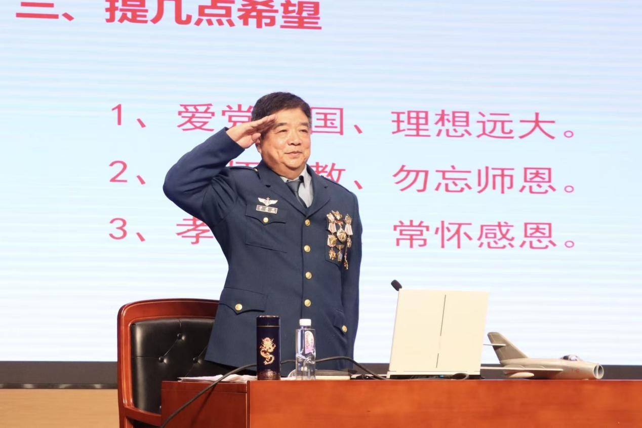 报告会上,李瑞祥大校以“拼搏实现梦想,青春奉献力量”为主题,深情回忆了自己在空军部队的飞行生涯。通过讲述驾机翱翔蓝天、保卫祖国领空的真实经历,生动展现了空军飞行员“忠诚、无畏、精飞”的崇高精神,让同学们深刻体会到“空中卫士”的责任与担当。即便退役后,李瑞祥仍坚守军人本色,积极参与军休所和党支部建设工作,连续多年获评优秀党员,用实际行动践行"退役不褪色、初心永不忘"的庄严承诺。