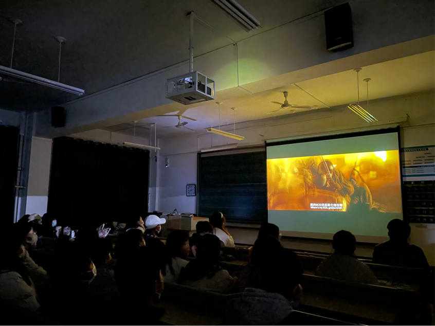 观影前,辅导员岳圆为同学们上了一场生动的主题微团课,向同学们讲述了72年前“雄赳赳,气昂昂,跨过鸭绿江”志愿军将士们高举抗美援朝、保家卫国的旗帜奔赴朝鲜战场的历史故事。告诉同学们这是在交战双方力量极其悬殊条件下进行的一场战争,是志愿军同朝鲜军民密切配合,战士们用自己的鲜血和生命,捍卫的正义,换来的和平。