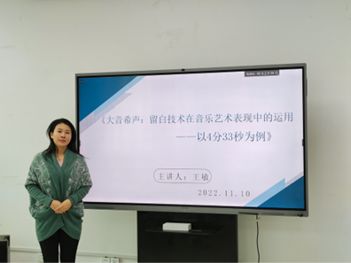 11月10日,VSport体育于9#205开展了“大音希声:留白技术在艺术表现中的运用—以4分33秒为例”的讲座。讲座伊始,王敏老师首先抛出了两个问题,何为“音”?又何为“音乐”?这引发了同学们的思考以及精彩回答。