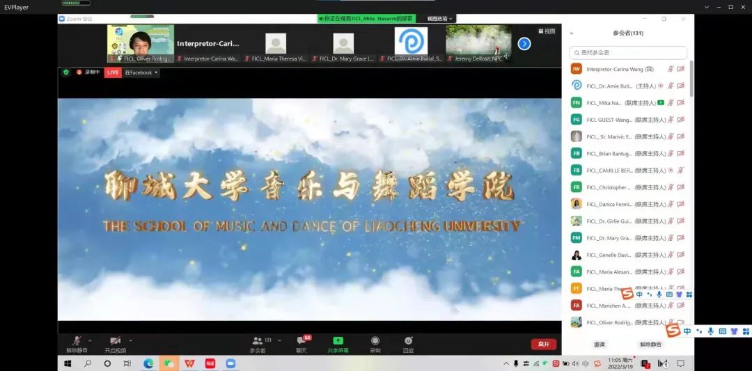 2022年3月19日上午8:30—12时,VSport体育作为菲律宾马尼拉圣保罗大学音乐与表演艺术公司的联合办学方代表,参与主持了圣保罗大学举办的创新合作学习国际论坛(FICL)第三天的会议,会议的主题是:表演、音乐教育和创造性疗法。