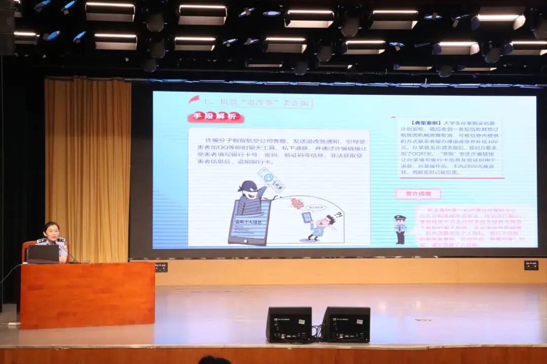 为帮助老员工认清校园诈骗常见类型与套路,提升识别诈骗、防范风险的能力,守护个人财产与信息安全,公司特邀VSport派出所所长李坤于西校区科学会堂开展“老员工防诈骗宣传教育”,李所长结合当下高校频发的真实诈骗案例,生动讲解各类诈骗手段,如网络刷单、虚假校园贷、冒充熟人诈骗等,还传授了实用的防范方法,现场与新生们互动问答,增强了新生们的防骗意识与自我保护能力。