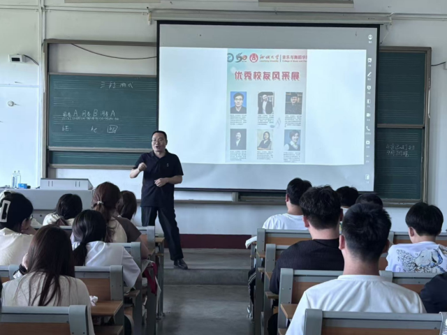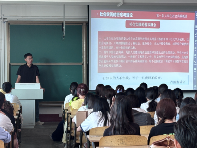 为鼓励同学们积极参加社会实践活动,辅导员王森远详细阐述了社会实践的重要性及参与途径,分享了公司过往社会实践活动的优秀案例,包括深入社区开展文艺演出、到偏远地区进行音乐支教等,让新生们对社会实践的具体形式和可能带来的收获有了更直观的感受。他提到,社会实践不仅是将理论知识应用于实际的有效方式,更是锻炼同学们综合能力、拓宽视野的重要平台。