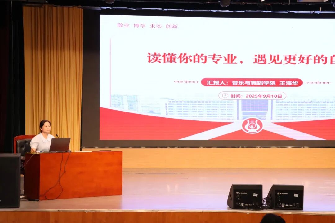 为帮助新生深入了解学科特点与专业发展方向,公司组织开展专业认知教育。副经理王海华系统讲解了音乐与舞蹈专业的培养目标、核心课程设置以及未来就业前景,并结合专业实际案例和学科资源优势,引导同学们增强专业认同、树立学业目标,为大学阶段的系统学习与艺术成长奠定坚实基础。