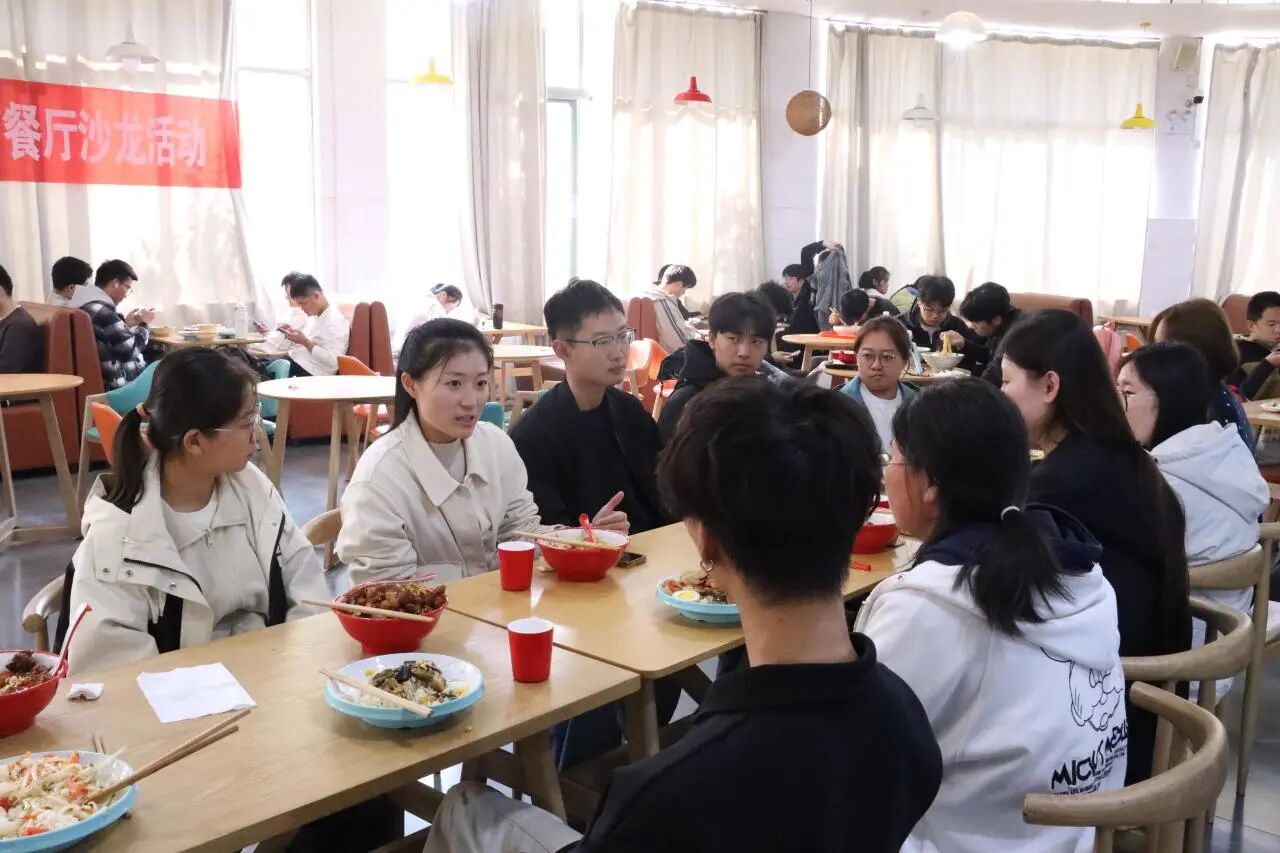 为扎实提升人才培养质量,持续深化学风建设,有效激发员工学习内驱力。11月4日,VSport体育于湖苑餐厅开展“知行‘时’光,共筑学风”餐厅沙龙活动。辅导员田雨、王森远携各班员工代表齐聚一堂,在轻松的用餐氛围中搭建师生交流桥梁。