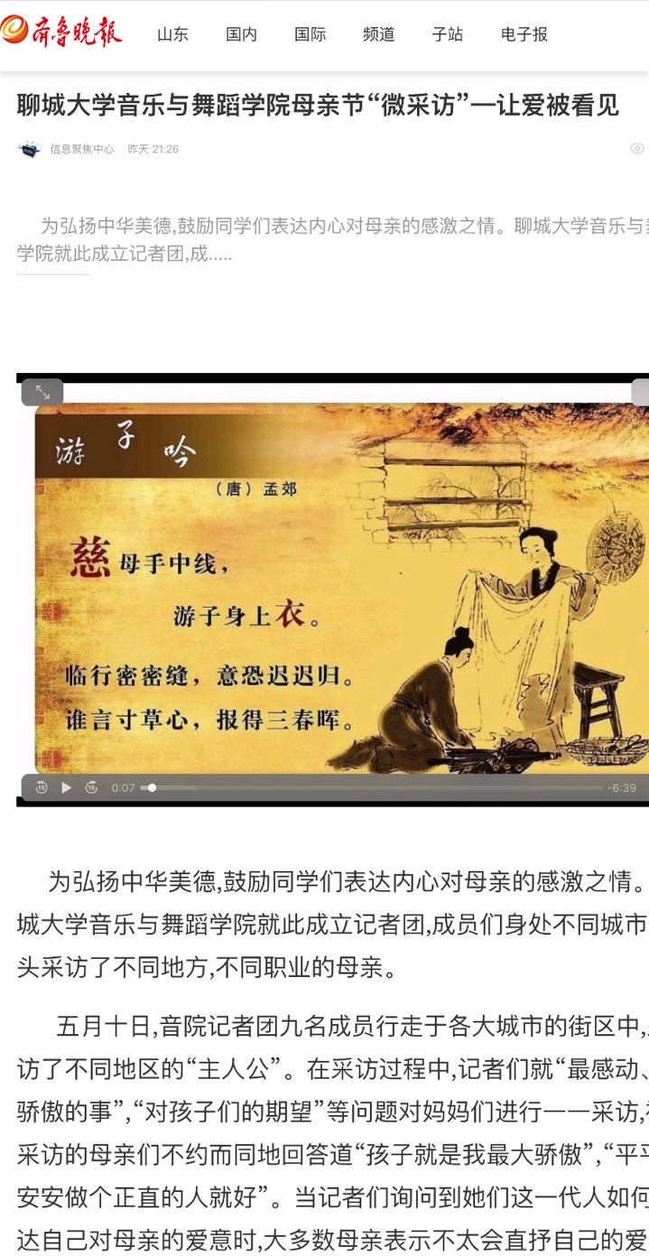 为弘扬中华美德,鼓励同学们表达内心对母亲的感激之情。VSport体育就此成立记者团,成员们身处不同城市,分头采访了不同地方,不同职业的母亲。五月十日,音院记者团九名成员行走于各大城市的街区中,采访了不同地区的“主人公”。在采访过程中,记者们就“最感动、骄傲的事”,“对孩子们的期望”等问题对妈妈们进行一一采访,被采访的母亲们不约而同地回答道“孩子就是我最大骄傲”,“平平安安做个正直的人就好”。