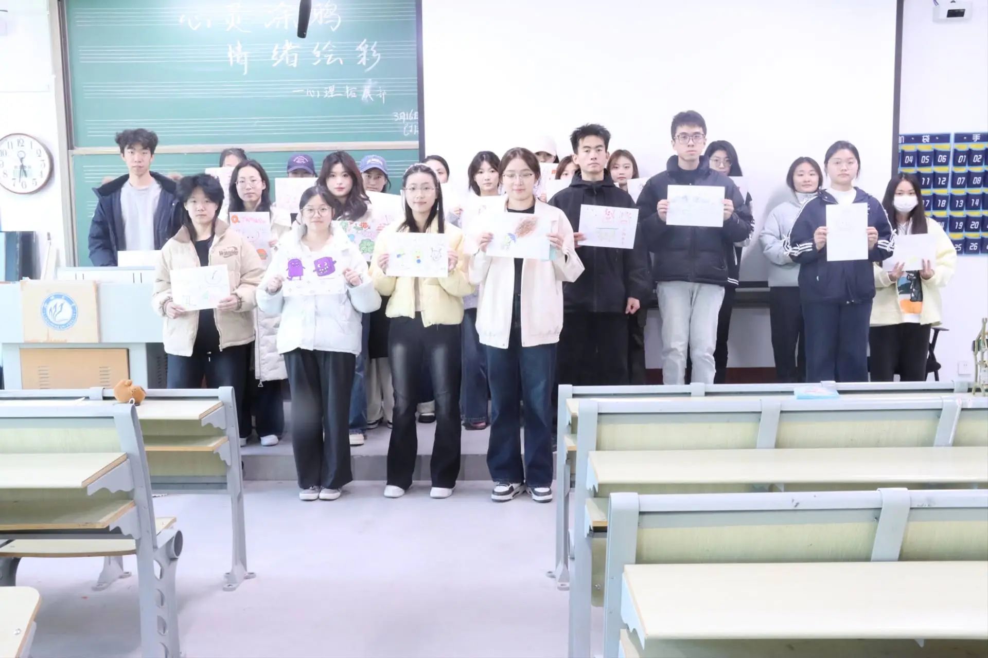 活动现场,同学们充分发挥创造力,以绘画为独特语言,将内心世界生动地呈现在画纸上。这种别开生面的表达方式,宛如一把钥匙,打开了情绪释放的大门,让同学们在尽情挥洒色彩的过程中,舒缓了日常学习与生活带来的压力和焦虑。同时,也促使大家深度审视内心,更加清晰地认识自身情绪和心理状态,进而学会接纳真实的自我,自信心也在创作中悄然增强。