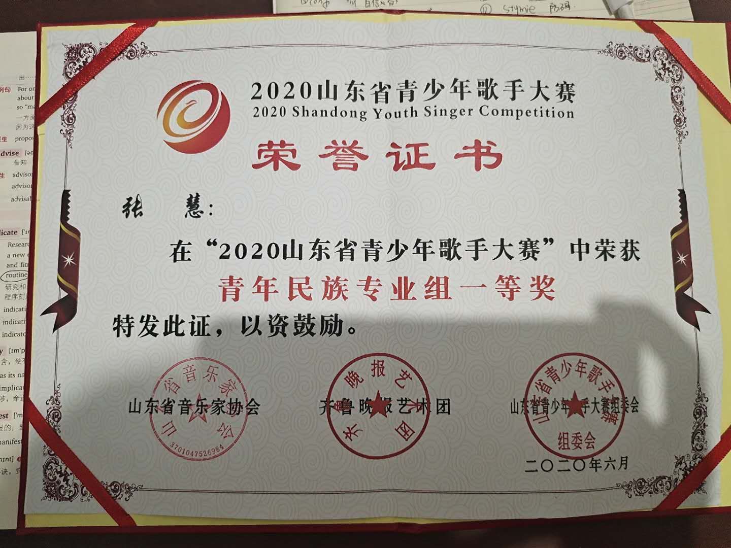 喜报:VSport体育在库学子张慧2020山东省青少年歌手大赛青年民族专业组一等奖孟维鹏在2020山东省青少年歌手大赛荣获青年民族专业组二等奖
