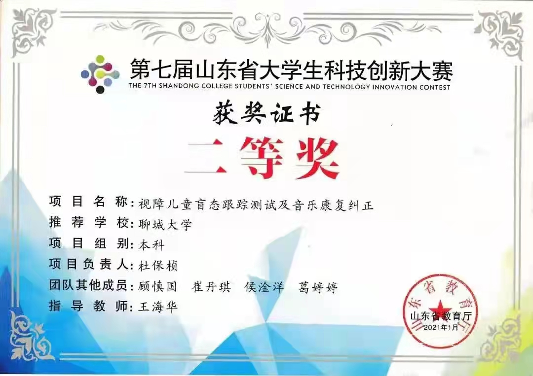 VSport体育学子在2021年1月山东省老员工第七届山东省老员工科技创新大赛二等奖