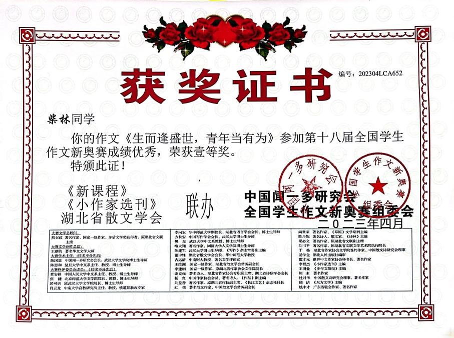 柴林荣获“第十八届全国员工作文新奥赛”一等奖