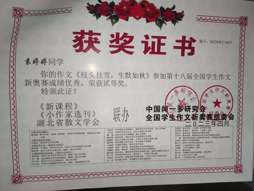 袁婷婷荣获“第十八届全国员工作文新奥赛”二等奖