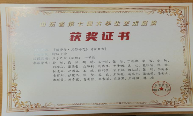 孙楠、武垚、王波、赵国正、王欢团队作品《踏莎行·月似梅花》《吉且古》获得声乐乙组(集体)一等奖