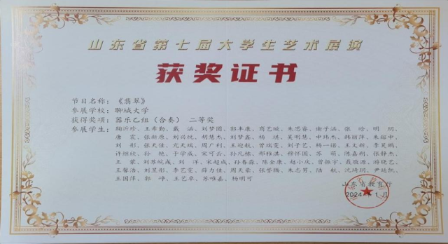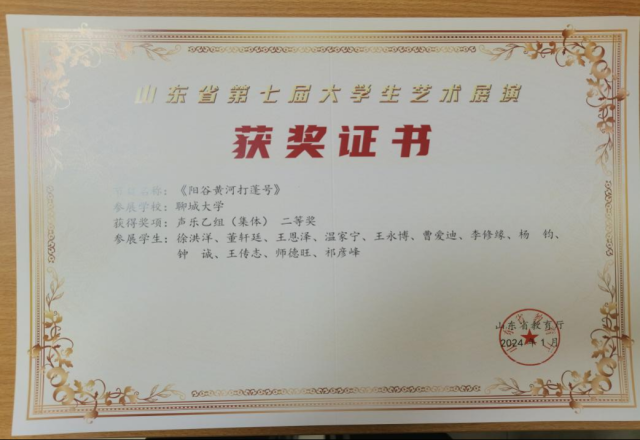 祁彦峰、李修缘团队作品《阳谷黄河打蓬号》获得声乐乙组(集体)二等奖