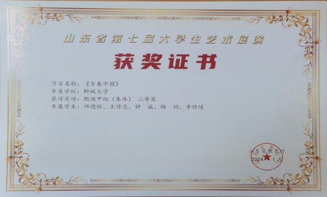 李修缘团队作品《青春中国》获得朗诵甲组(集体)二等奖