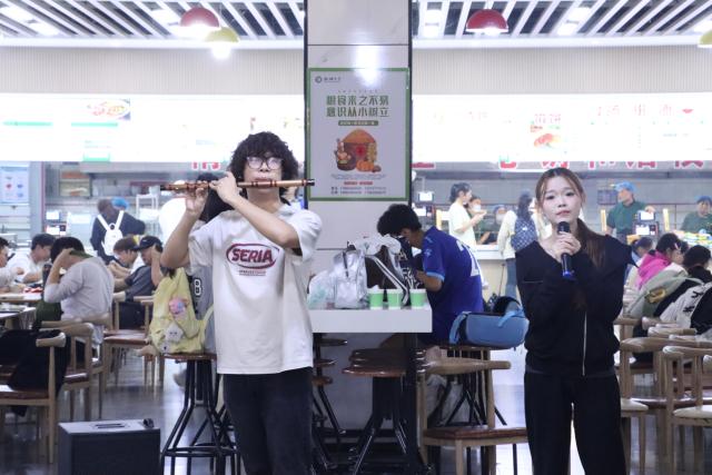 音乐表演环节将氛围推向高潮。员工代表潘梓萌、赵博洋带来经典歌曲《锦瑟》,婉转笛声交织深情演唱,勾勒出细腻动人的意境,让现场师生沉浸在悠扬旋律中;新生代表王思远、于启航分别献唱《飞云之下》与《找自己》,歌声里满含的蓬勃朝气,为现场注入满满青春能量,台下掌声与欢呼声此起彼伏。活动尾声,各位领导老师与新生共同举杯,既传递了对2025级新生的欢迎,更寄予了殷切期许,为新生开启大学新篇章注入温暖力量。