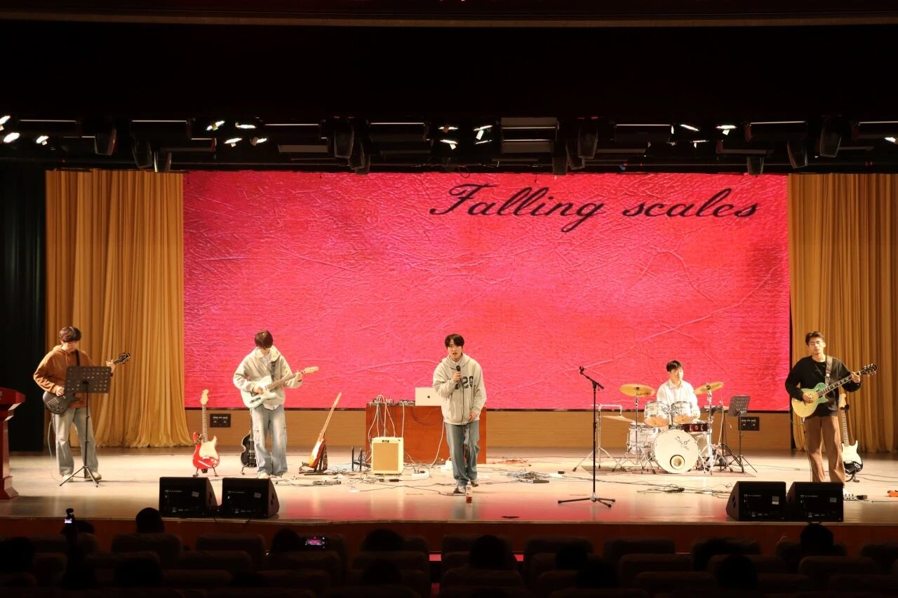 演出伊始,临界弦响乐队以一曲《着魔》拉开帷幕,电吉他与贝斯轰鸣点燃现场,主唱有力的演唱收获阵阵欢呼;经典与原创作品展示环节,乐手娴熟的指弹尽显吉他韵味,歌手深情的演唱或清亮或醇厚,与器乐旋律丝丝相扣、浑然一体,尽显学子创作才华与演奏、演唱的功底。音乐会尾声,经典歌曲《海阔天空》响起,观众的闪光灯汇成了“星海”,在轻声合唱中,本地“吉他之夜”圆满落幕。