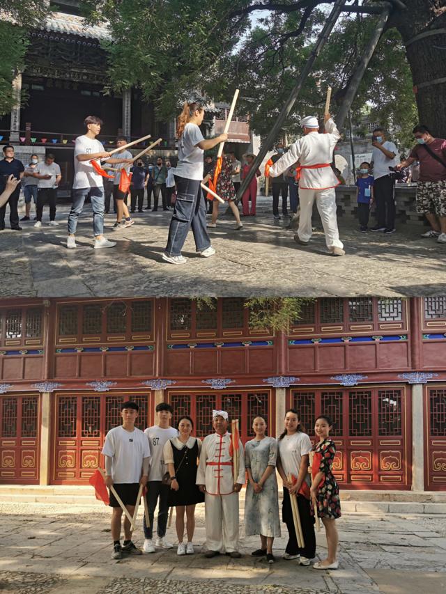 摆渡口秧歌又称 “平调秧歌”也叫“泊渡口大秧歌”,流传在茌平县洪屯乡泊渡口村和贾寨乡一带,起源于明末清初,距今四百余年。摆渡口秧歌是聊城特有的非物质文化遗产,已有400多年的传承历史,摆渡口秧歌不仅是聊城独有的文化传承,更是寄托了祖先们团结一致、共同战胜灾害的愿望。在两位老师的带领下,同学们观看了摆渡口秧歌表演,了解了摆渡口秧歌的历史与发展历程。为更加深刻的了解摆渡口秧歌的舞蹈魅力,老师与同学们向团长请教秧歌的精髓与特点,学习摆渡口秧歌的基本动作等,活动中学习气氛浓厚,老师和同学都分外珍惜此次户外采风的活动机会。