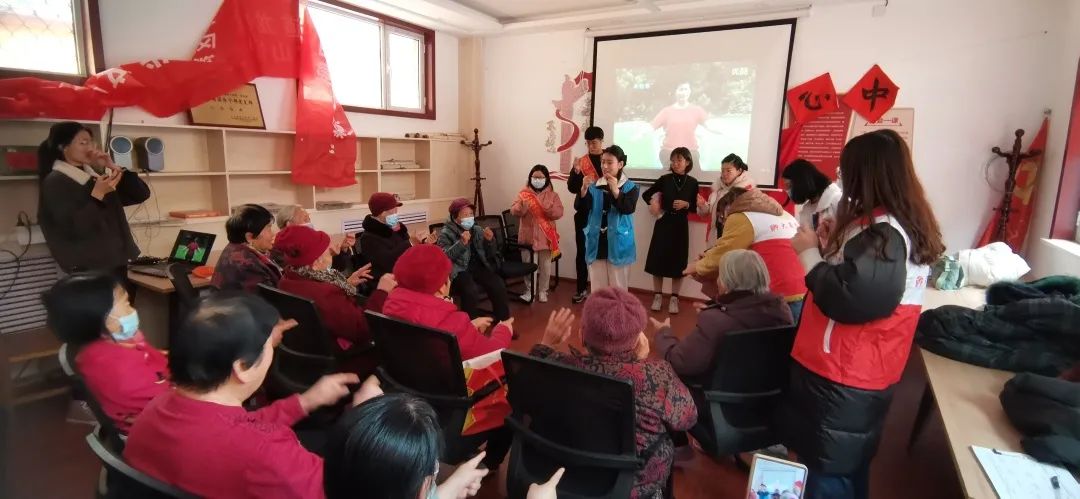首先,志愿者同老人一起复习《手指操》,让《手指操》内容深深印在老人们的脑海中。老人们表示,这段时间他们一直在坚持做手指操,精神状态有了明显改变。接着负责人为老人们播放了精彩的小品《吃面》,老人们无不被幽默的情节逗笑。最后,负责人们陪老人一起聊天,有的把自己学习生活中的趣事讲给老人,有的听老人讲过去的故事,还有的在给老人读报纸,大家在一起其乐融融。