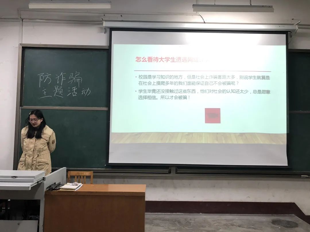 他们介绍了网络诈骗的相关内容,包括网络诈骗的各种手段和防范措施,并通过六个真实案例与相关视频加强同学们的防范意识。董佳琪还提醒大家要警惕网络上各种二维码与链接,不要因为贪图一点利益而造成更大的损失,她提醒大家不要随便泄露网银账户、防范虚假缴费短信。活动过程中同学们认真听讲,并积极参与讨论。有同学表示自己也曾遇到过网络诈骗,此次活动给他带来很大的帮助,以后一定会提高警惕。最后权益部再次强调,防人之心不可无,保持理性不轻信,不图虚荣冷静辨真伪。