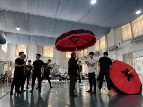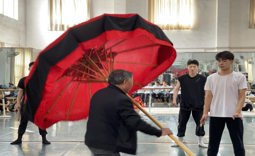 张新利给大家讲解了山东聊城 “运河伞棒舞”的历史渊源、艺术特点和技术要领。他亲自展示了“运河伞棒舞”的独特魅力,在场老师和员工对“运河伞棒舞”中伞的运动路线与棒的挥动方式有了新的认识。接着,张新利对舞蹈系创作编排的“运河伞棒舞”作品进行了指导,作品在队形、动作、挥棒等方面得到整体提升。