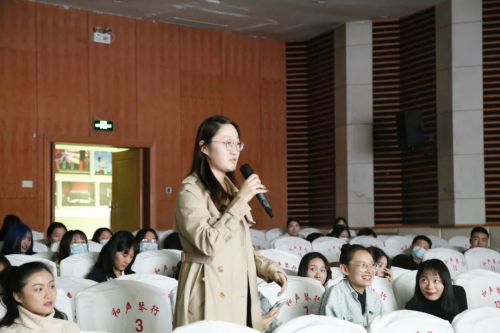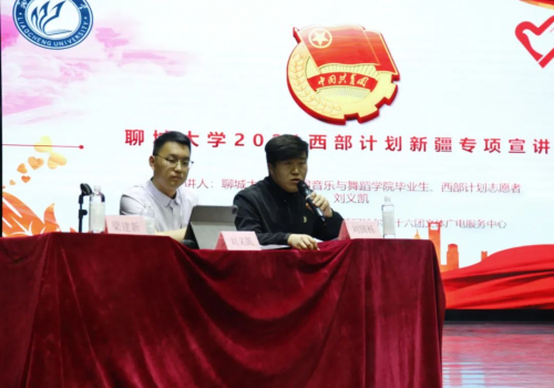 会上,刘义凯通过短视频展示了新疆的各地自然风光和特色美食、风土人情等,激起了大家对新疆这片美好净土的无限向往。他希望同学们能走出去,看看祖国的大好河山,丰富自己的人生阅历,在磨炼中成长。接着,刘国栋分享了自己参加西部志愿者的初衷、在基层服务的丰富经历以及作为西部计划志愿者的巨大收获。两位志愿者希望大家脚踏实地,把理想化为力量,将自己所学运用到服务基层中,在祖国边疆挥洒青春的汗水,在实现中国梦的伟大实践中书写精彩人生。