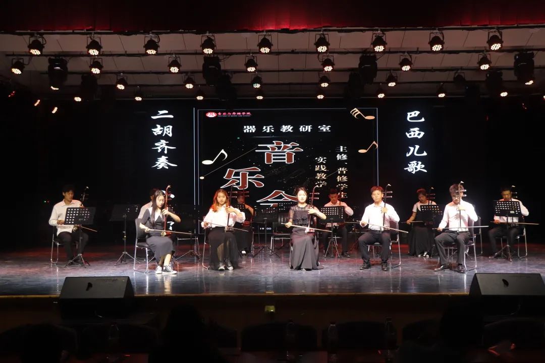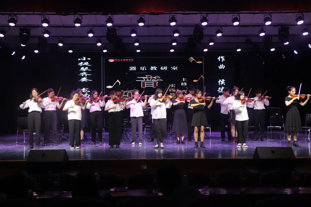 本场器乐会以一首节奏明快、旋律活泼欢悦的《小红帽》拉开帷幕,让在场的观众瞬间梦回童年;小提琴齐奏《八月桂花遍地开》、《龙的传人》旋律热情激昂,让观众从曲中就能感受到那如火如荼的革命热情和对党的热爱。接着主修生带来了一首《摇篮曲》,它给现场带来了一种安宁又亲切的气氛,曲调抒情优雅,旋律平稳缓和;《卡农》作为一首经典作品,旋律简单朴实,却又缠绵不断,像极了恋人之间的生死追随;莫扎特的《小夜曲》以活泼流畅的节奏和短促华丽的颤音,组成了欢乐的旋律,充满了明朗的情绪色彩和青春气息;器乐会在《山丹丹花开红艳艳》欢快的曲调和响彻的掌声中圆满落下帷幕。