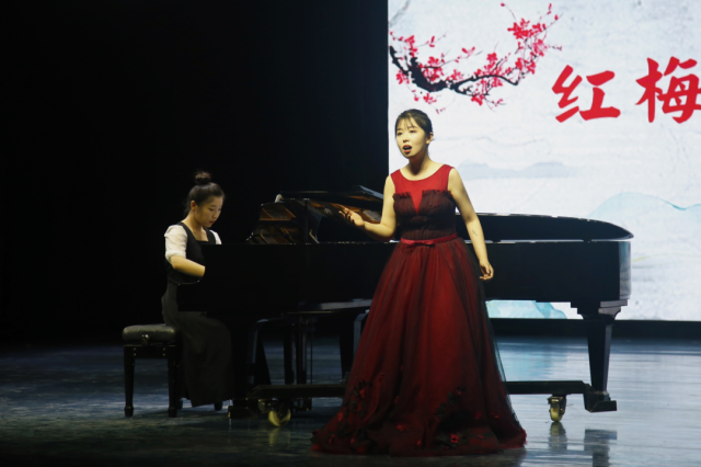 本场音乐会共分为“历史•足迹”“传承•未来”两个篇章。歌曲《映山红》优美的旋律与深情的歌词渲染了现场的氛围,演唱者深情表达了人们对红军的热爱,对英雄的崇敬。《怀念战友》展现出新疆塔吉克族特有的激情和质朴的曲风,旋律独特新颖,曲调婉转忧郁。“红梅花儿开......香飘云天外” 《红梅赞》演唱者以优美动人的歌声加上娴熟轻灵的唱法,博得了在场观众的阵阵掌声。《唱支山歌给党听》演唱者时而悲痛凄楚,如泣如诉;时而壮怀激烈,字字铿锵。《我爱你,中国》歌词质朴无华,却有着动人心魄的激情。合唱《我们走在大路上》旋律积极向上,节奏铿锵有力,唱出了中国共产党追求理想、披荆斩棘把社会主义建设好的坚强信念,及全体人民意气风发,斗志昂扬,在建设社会主义大路上阔步前行的豪迈气概。《在希望的田野上》歌词朴实、曲调优美流畅上口,演唱者抒发了对家乡的赞美,对美好生活的赞美的情感。歌曲《走进新时代》旋律动人正气、歌词真挚朴实,充满爱国主义精神,歌颂了中国人民勤劳勇敢和无限智慧,表达对中国共产党的爱戴和尊敬之情。合唱《共筑中国梦》,壮阔激昂的旋律,加上演唱者们满怀豪情,将音乐会推入最后高潮。在同学们的精彩演出下,伴随着歌声,本场音乐会在现场热烈的掌声与欢呼声中缓缓落下帷幕。