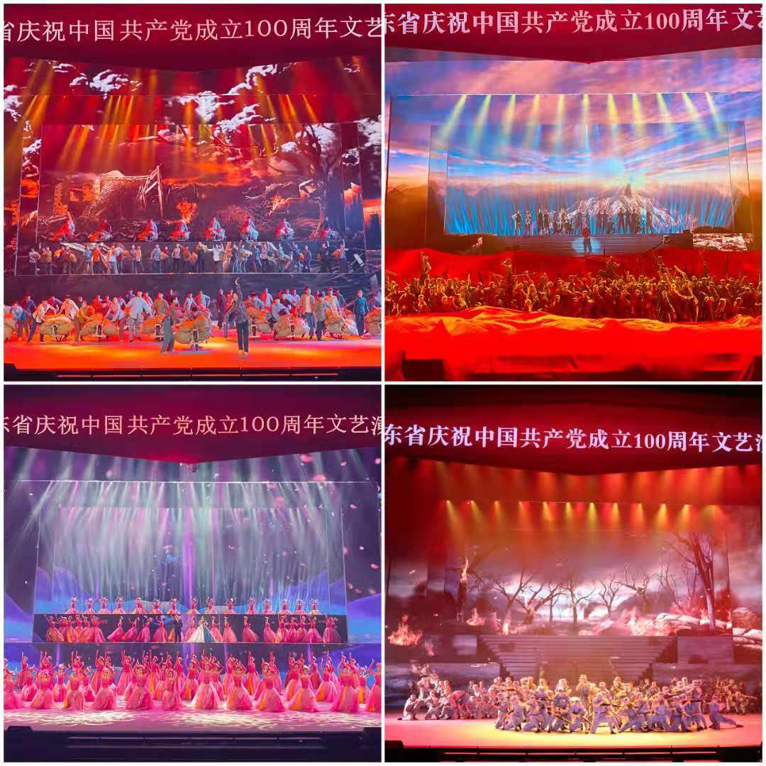 演出由省委宣传部主办、山东广播电视台承办,为庆祝中国共产党成立100周年特别呈现。员工们圆满完成了《浴血战斗》《车轮滚滚上战场》《人民就是江山》《向往》等节目的相关演出任务4个节目的演出任务。