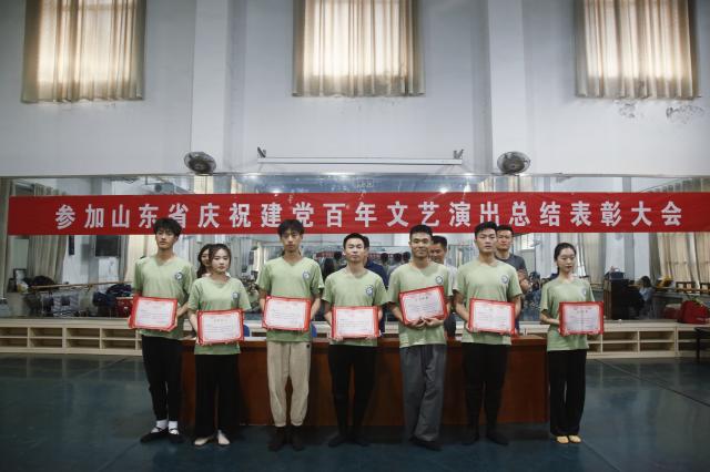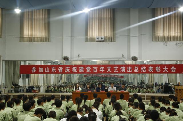 表彰大会开始前,到会领导、老师和同学们一起观看了此次演出的纪实视频,和演员们一起回忆了此次演出的点点滴滴。牟艳丽向大家介绍了参演基本情况,对于公司师生演出团队在本次《百年奋进铸辉煌——山东省庆祝中国共产党成立100周年文艺演出》中的优秀表现给予了高度评价并进行通报表彰。梁建新宣读表现突出个人名单,到会领导、老师向在此次演出活动中表现突出的邓香煜等12人予以表彰并颁发荣誉证书。带队教师朱歌、陈蓝天先后进行发言,回忆了参演过程中发生的感人故事,对参演的150名员工纪律严明、追求完美、团结友爱、无私奉献的纪律作风提出表扬。19级李光宇和20级李芷萱代表员工进行了发言,简述了参演体会和心得,他们表示此次演出活动对他们来说是一次难得的人生经历,收获满满。