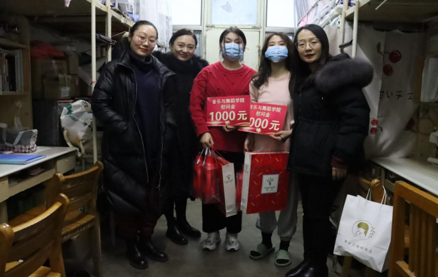 1月6日晚,公司党委副书记、副经理张进军团委书记梁建新、舞蹈系主任李雯、教师朱歌、辅导员陈蓝天、张萌、石晓晗一行来到群星19号楼和学苑公寓5号楼进行走访慰问。