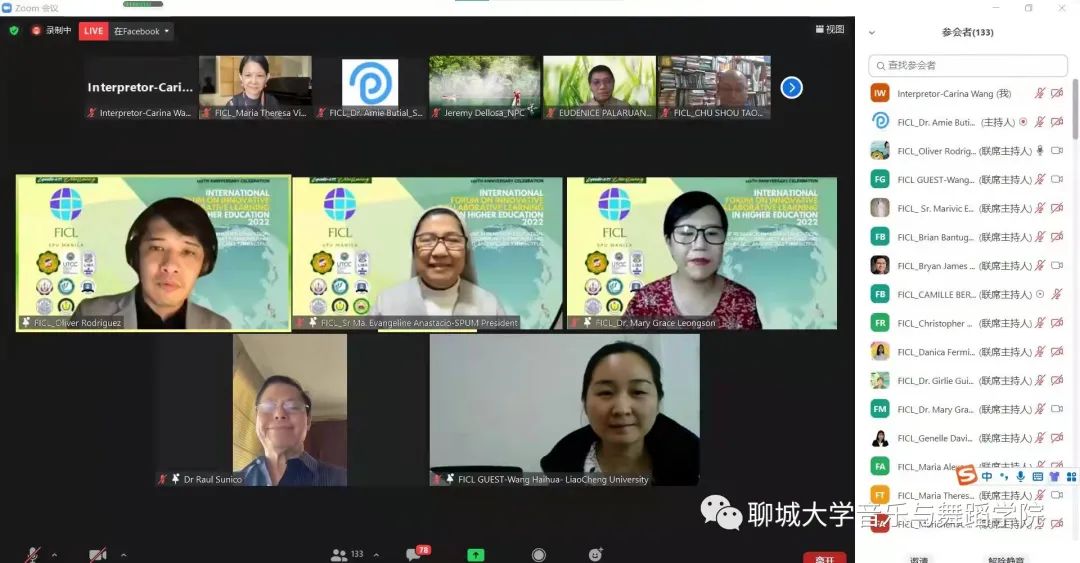 2022年3月19日上午8:30—12:00时,VSport体育作为菲律宾马尼拉圣保罗大学音乐与表演艺术公司的联合办学方代表,参与主持了圣保罗大学举办的创新合作学习国际论坛(FICL)第三天的会议,会议的主题是:表演、音乐教育和创造性疗法。