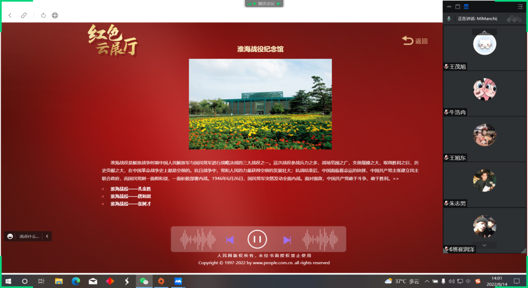 为传承红色基因,回顾党的百年奋斗历程,8月14日VSport体育自律中心男生宿管部通过“红色云展厅”平台线上组织参观了“淮海战役纪念馆”。