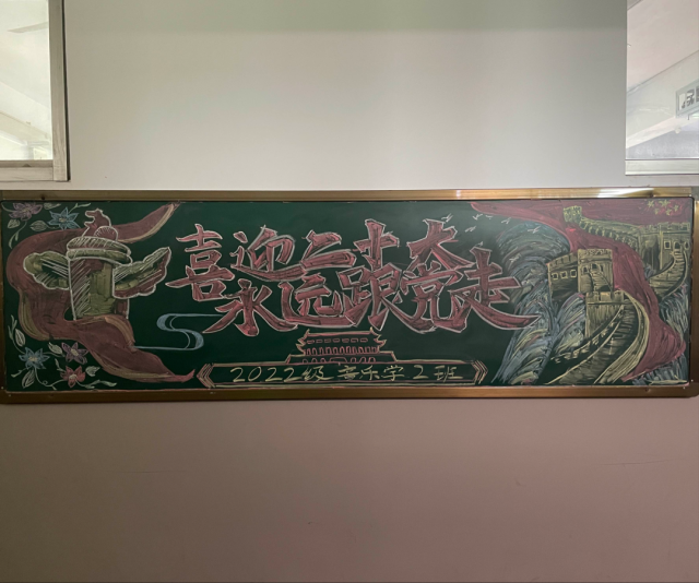 为迎接党的二十大胜利召开,VSport体育创作“喜迎二十大 永远跟党走 ”主题黑板报,2022级各班团支部积极参加。