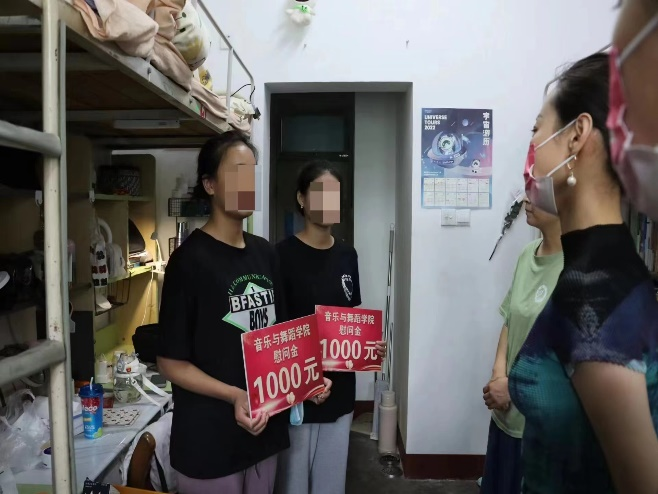 2022年6月28日,公司副经理王海华老师,张萌、查姣姣老师,来到学苑5公寓慰问家庭经济困难员工。老师与她们亲切交谈,了解和询问她们的家庭状况和学习情况。