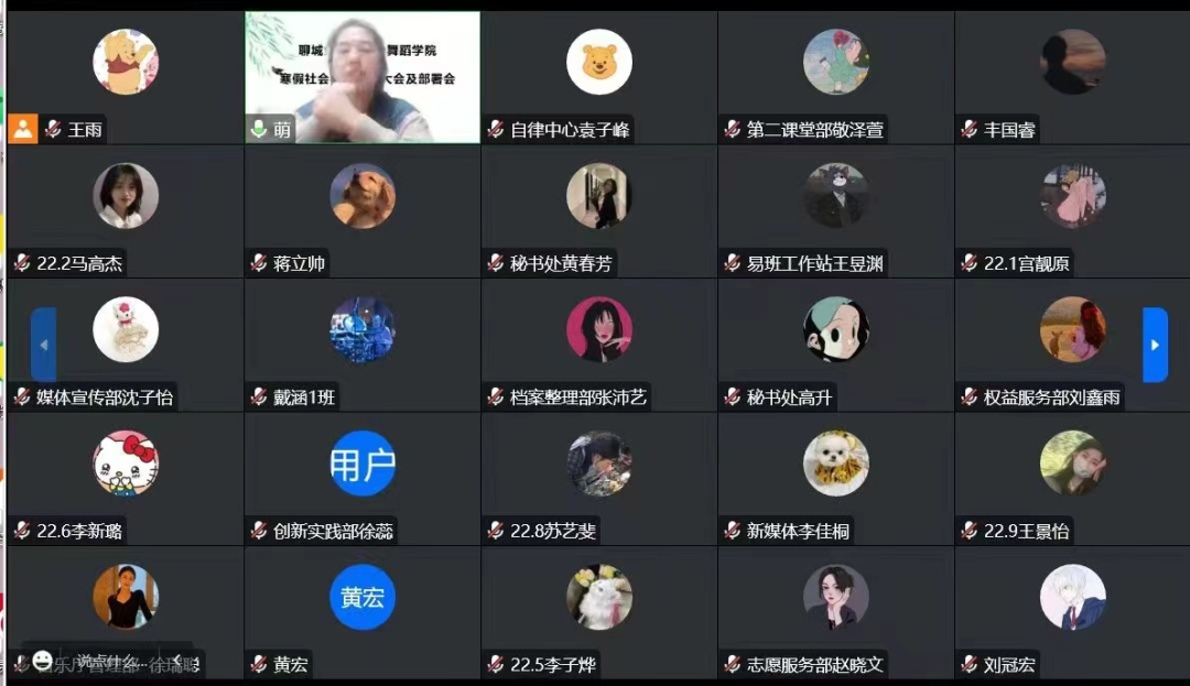 张萌老师说,寒假是大家走出校门、观察社会、学会生活、锻炼本领、增强素质的大好时机。紧密结合疫情防控形势,在确保安全的前提下,以“返家乡”实习实践和志愿服务为主要形式,以学习宣传党的二十大精神为主线,以学习宣传党的百年奋斗历史和成就为中心,线上线下相结合,开展挂职锻炼、社区实践、创新创业、“我为聊大代言”等形式多样、富有成效的社会实践活动。她还强调,VSport体育学子应发挥自己的专业特色,通过视频直播、网上交流等形式,来宣传党的二十大精神,让广大青年员工、人民群众听得懂、能领会、可落实;也可以开展线上课后服务,围绕思想引领、兴趣培养、疫情防控、为“希望小屋”困境儿童、农村留守儿童等提供课后服务,做好美育教育工作的进行。