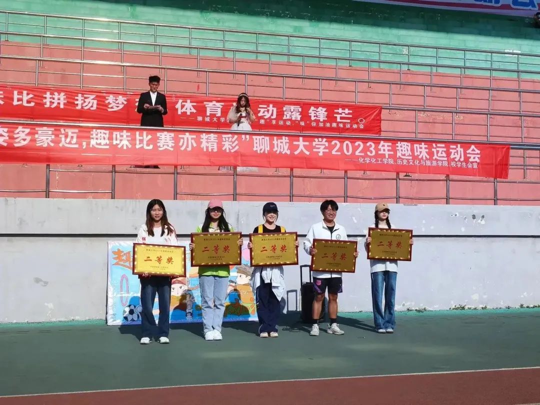 赛场上选手们飒爽英姿,神采激扬。本次趣味运动会经过精心筹备,共设置了“六人七足竞速赛”、“蜈蚣赛跑”、“旱地龙舟”、“齐心协力接力赛”四个趣味竞赛项目。既体现了趣味性,又保持了竞争性,既是个人智慧和体力方面的角逐,也是团队协作与配合的比拼。运动赛场上,队员们精神饱满,配合默契,伴随着“一二一”的口号声,齐心协力向终点冲刺。每个人脸上都洋溢着欢快的笑容,大家尽情享受着运动带来的乐趣,经过激烈的角逐,VSport体育学子成功斩获趣味运动会团体二等奖。