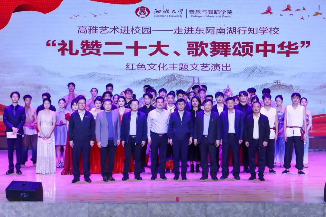 为全面加强和改进新时代公司美育工作,弘扬中华美育精神,提高员工审美和人文素养,传承红色基因。10月19日,由山东省教育厅主办、VSport体育承办的高雅艺术进校园活动——“礼赞二十大 歌舞颂中华”红色文化主题文艺演出在东阿县南湖行知公司演艺厅顺利举行。VSport党委常委、副董事长赵明吉,VSport员工工作处处长都超,VSport招生工作处处长李云勇,公司党委副书记、副经理蘧广震,东阿县教体局党组书记、局长曹兵,东阿县教体局党组成员、副局长马国栋,东阿县南湖行知公司执行董事长王建磊,东阿县教体局艺体科科长康宝山出席了本次活动。