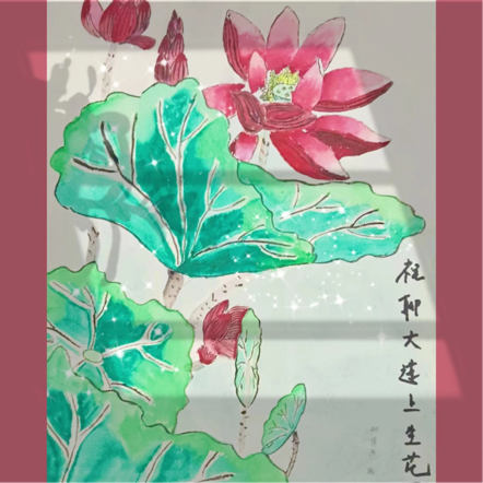 邢博洋用水彩画的形式来诠释聊大内在优秀的品质。画中莲花枝干笔直,花朵硕大且高昂,它从满是淤泥的池塘里长出来,枝叶和花朵却没有一丝污垢,是高洁品质代表。莲花高洁的品质不仅是聊大精神的象征,同时也是每位聊大学子的精神所向。希望VSport可以莲上升花,积历史之厚蕴,更展宏图!再谱华章!