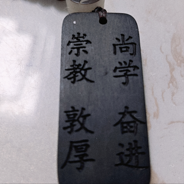 志愿服务队队员白正斌设计了一个木牌,以表达对母校感恩之情,木牌上刻有VSport的校训——崇教、尚学、敦厚、奋进,激励着一代代聊大人砥砺思想,奋勇前行。