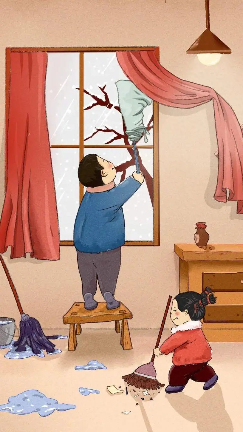 扫尘: “腊月二十四,掸尘扫房子"每临春节,家家户户都要清洗家具,拆洗被褥,进行一次卫生大扫除,干干净净迎新春,以祈新岁之安。