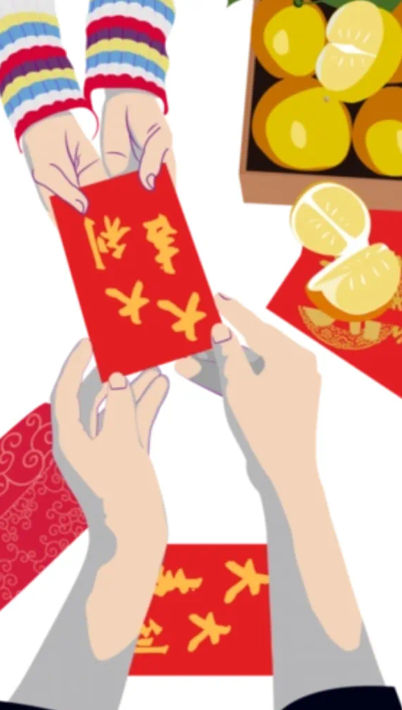 压岁钱:长辈将事先准备好的压岁钱分给晚辈,这寓意着晚辈得到压岁钱就可以平平安安度过一岁。或者是晚辈给长辈准备压岁钱,这个压“岁”压的是年岁,寓意着老人能够平安长寿。压岁钱这一传统习俗体现了人们之间浓浓的亲情。