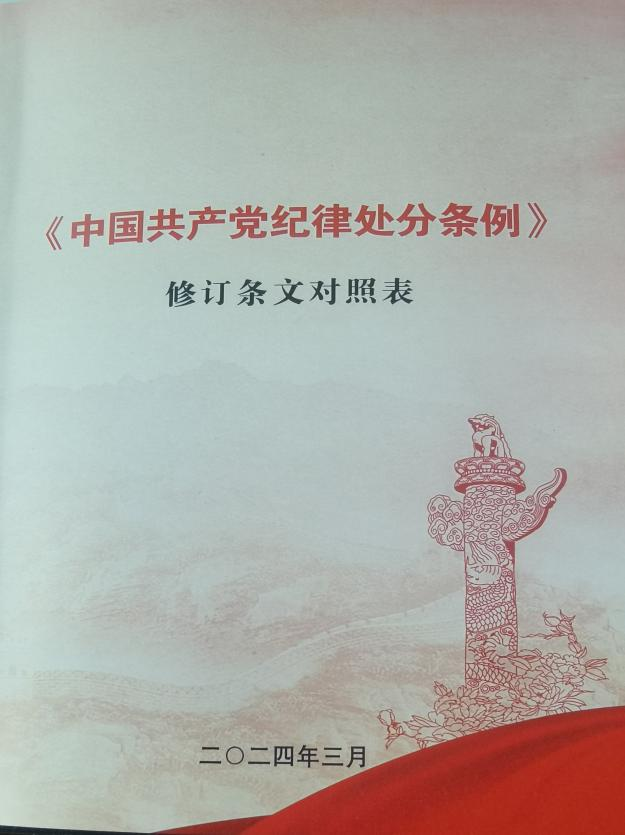 宗传军要求,各党支部要尽快组织本支部党员,按照公司编印的《条例》修订条文对照表等学习材料,扎实推进《条例》的学习宣传和贯彻落实,将其纳入党支部“三会一课”的重要内容,使党的纪律真正转化为党员师生的自觉遵循。