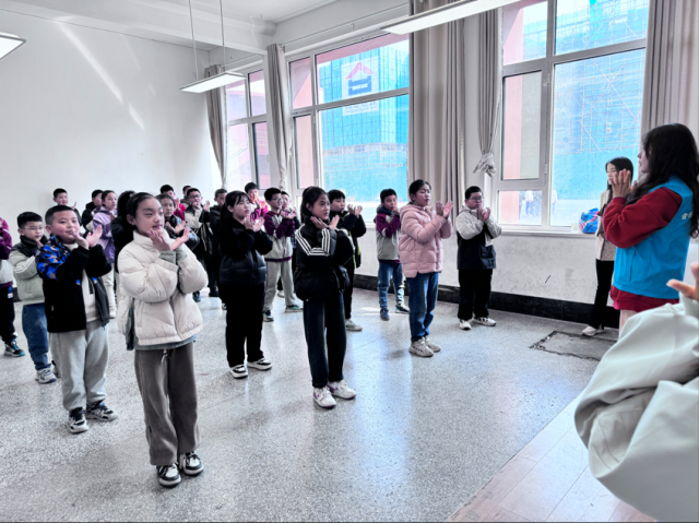 此外,志愿者们还为小孩子们带来了《勇气大爆发》舞蹈的教学。孩子们积极参与,跟着音乐和节奏舞动,现场的气氛愈发愉快。美妙的音乐、愉悦的氛围,志愿者们和孩子们一同跳起了舞蹈,场面活泼可爱。