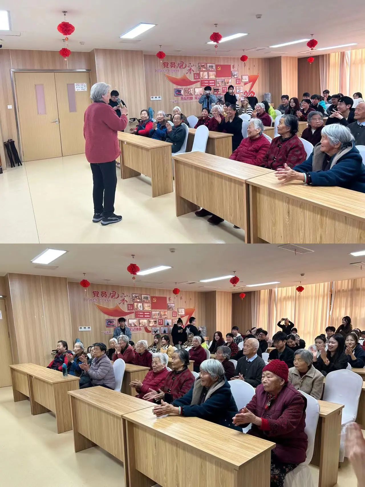舞蹈表演、器乐演奏、红歌演唱……一个个精心准备的节目,给老人们带来了不一样的欢乐与关怀,同学们用真诚与热情为老人传递了爱心与温暖。演出结束后,同学们还向老人们讲解了一些日常安全知识,同时表达了对老人们的美好祝愿。