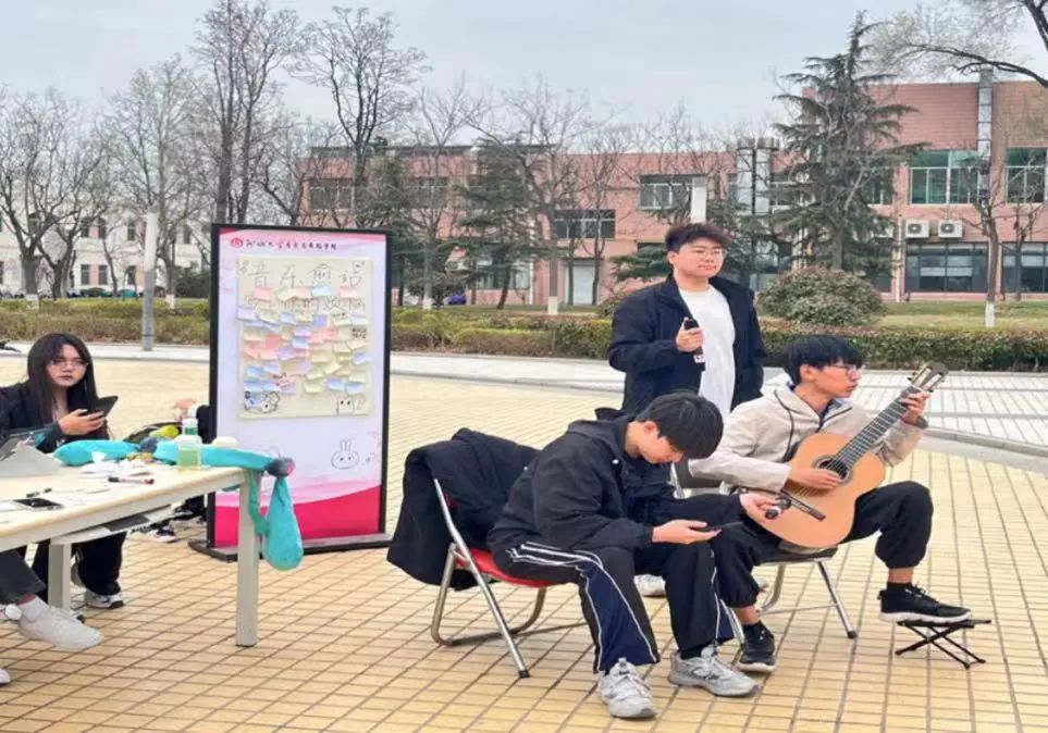 活动伊始,志愿者们播放的欢快音乐很快就吸引到了众多员工的注意,同学们在活动宣言—“音乐不仅仅是耳朵的享受,更是心灵的治愈”的鼓励下,积极参与活动之中。大家首先将自己的烦恼便签贴在展览板上,随后根据当下的心情,向志愿者们点播想听的音乐表演,同时志愿者们也通过才艺展示的方式,将自己的情感表达出来。在欢快惬意的氛围中,同学们既释放了自己的压力,也在音乐的渲染下汲取到了治愈的力量。